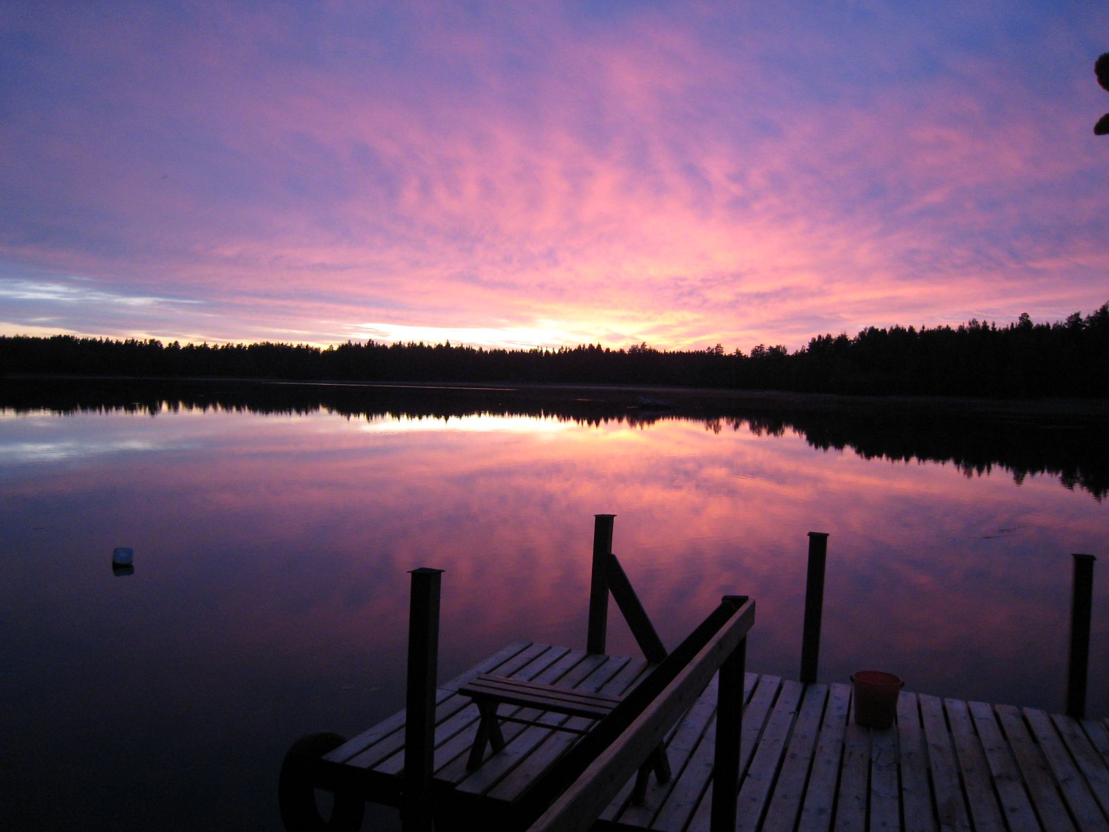 Lopuksi tunnelmallinen kuva alueen venelaiturin läheltä, kesäkuinen auringonlasku.